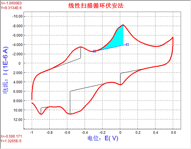 (內(nèi)含0.20mol/L KNO3)溶液的循環(huán)伏安曲線進(jìn)行數(shù)據(jù)處理,選取曲線的第二圈,